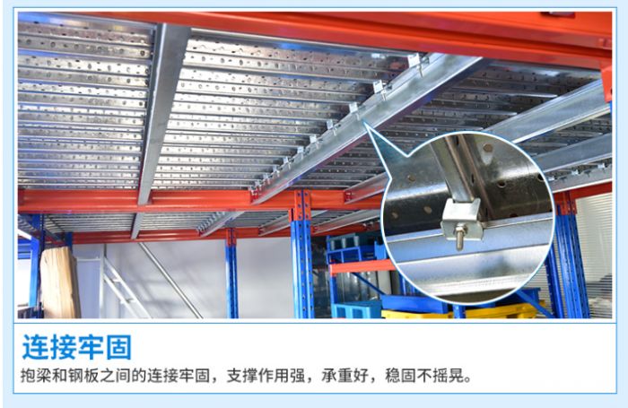 5、下層是貨架形式,上層可以是平臺也可以是貨架的結(jié)構(gòu)。底層貨架既可以存儲物料又是樓面的支撐,極具靈活性。