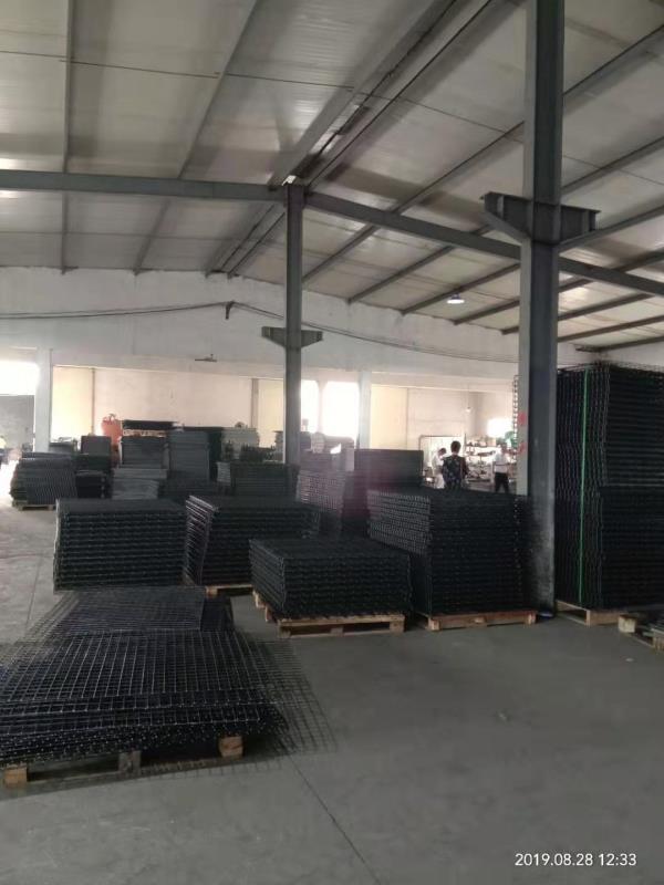貨架層網原材料采用高質量的冷拔絲噴焊而成,形成網目為50*50的網片,底部加加強筋加強,兩邊折彎放置于貨架橫梁之上,保證貨物安全。一般載重可達3T,表面處理為鍍鋅及噴塑處理。