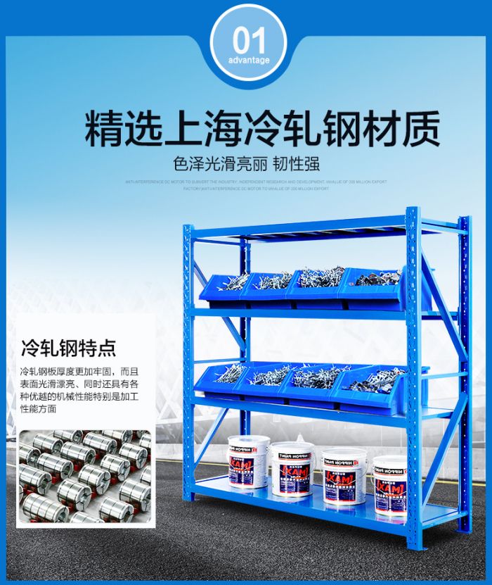 材質(zhì):冷軋異形鋼,表面靜電噴塑 型號(hào):倉(cāng)儲(chǔ) 庫(kù)房 承重:200KG-800KG/層
