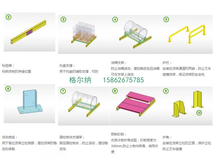 可根據(jù)存儲(chǔ)單元集裝設(shè)備的特性加裝如:隔檔、鋼層板(木層板)、金屬絲網(wǎng)層、倉(cāng)儲(chǔ)籠導(dǎo)軌、油桶架等功能性附件。滿足不同單元集裝設(shè)備形式的貨物存儲(chǔ)。