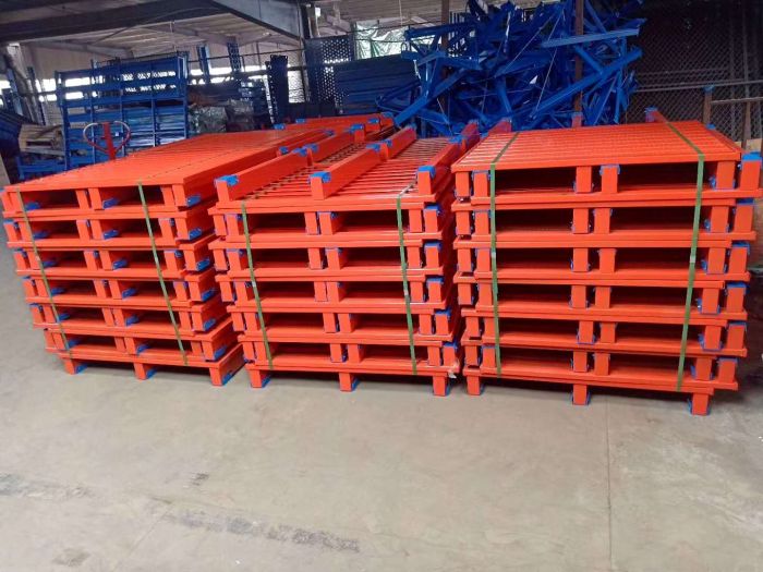 鋼制托盤主要材料為鋼材或鍍鋅鋼板,經(jīng)專用設(shè)備成型,各種型材互相支撐,鉚釘連接加強(qiáng),再經(jīng)CO2氣體保護(hù)焊焊接而成,是現(xiàn)在工業(yè)重要的倉(cāng)儲(chǔ)與運(yùn)輸輔助設(shè)備之一。